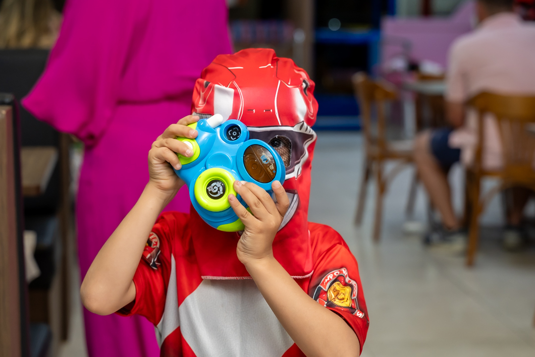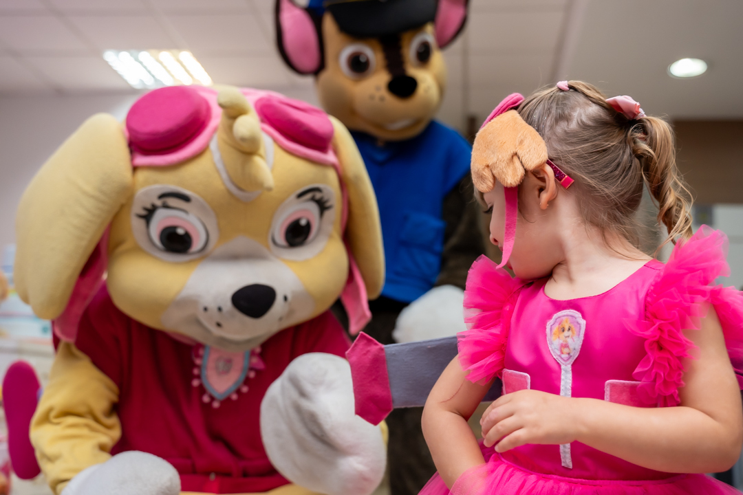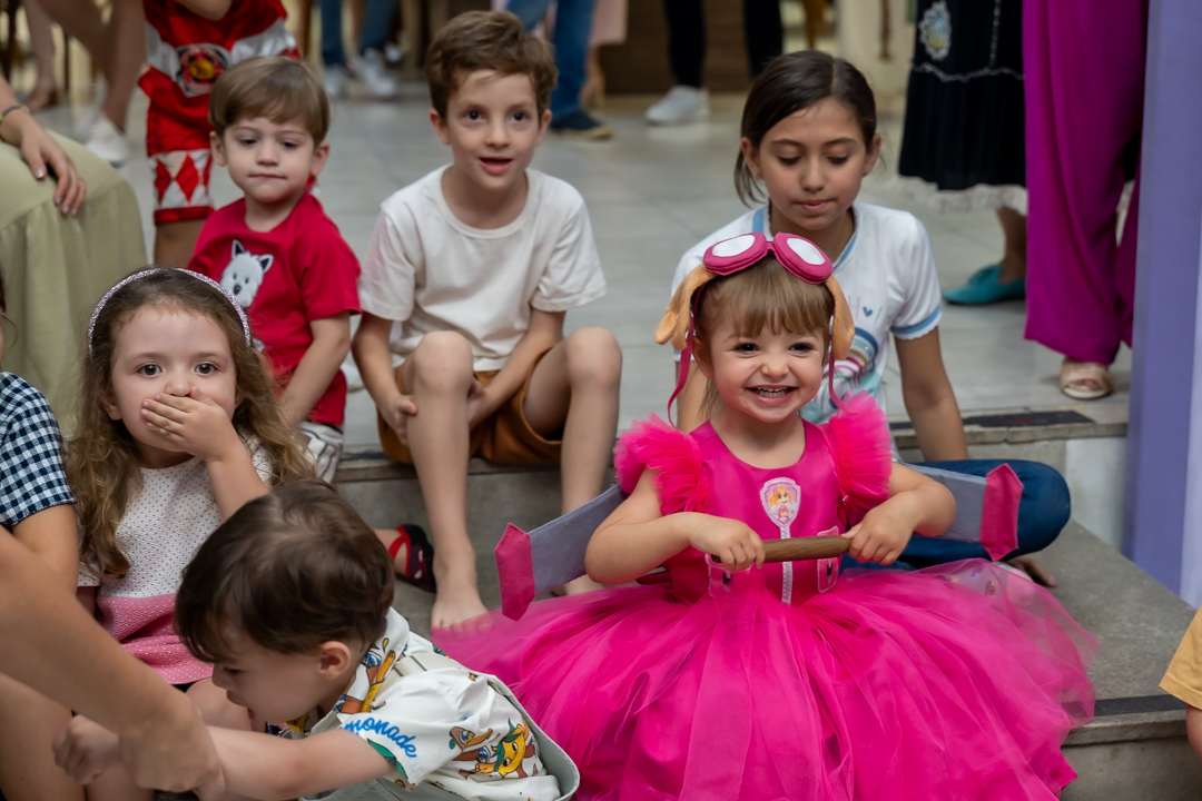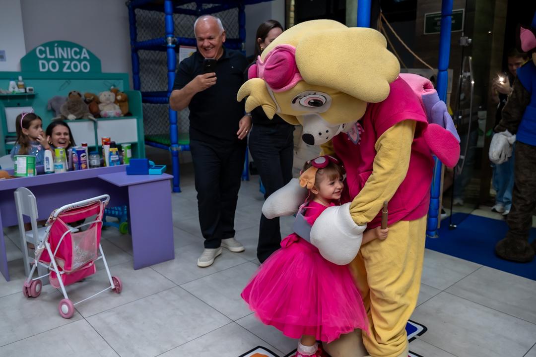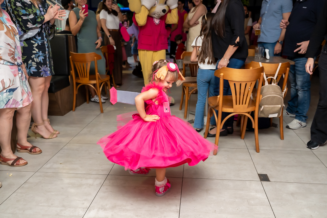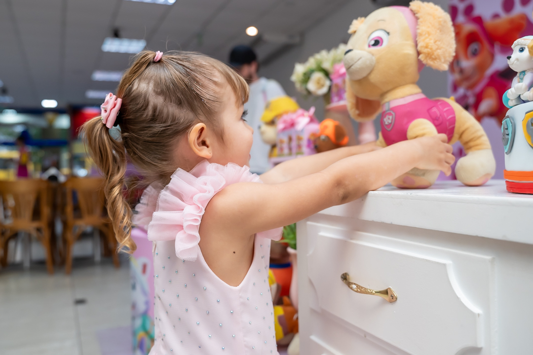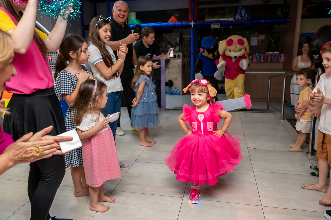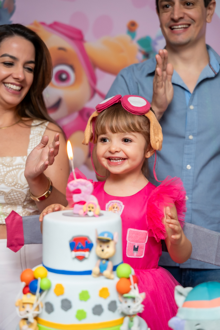 Com o tema Patrulha Canina, a decoração estava linda — e a alegria ficou completa com a visita surpresa dos personagens Chase e Skye.