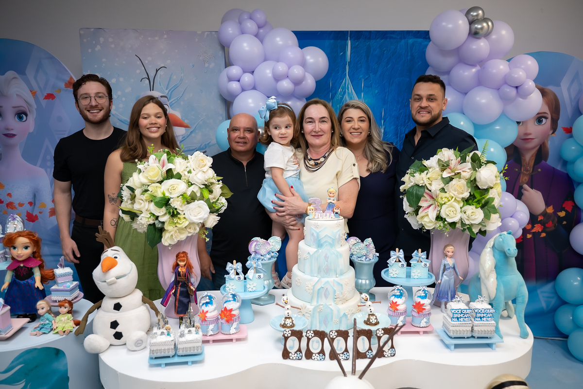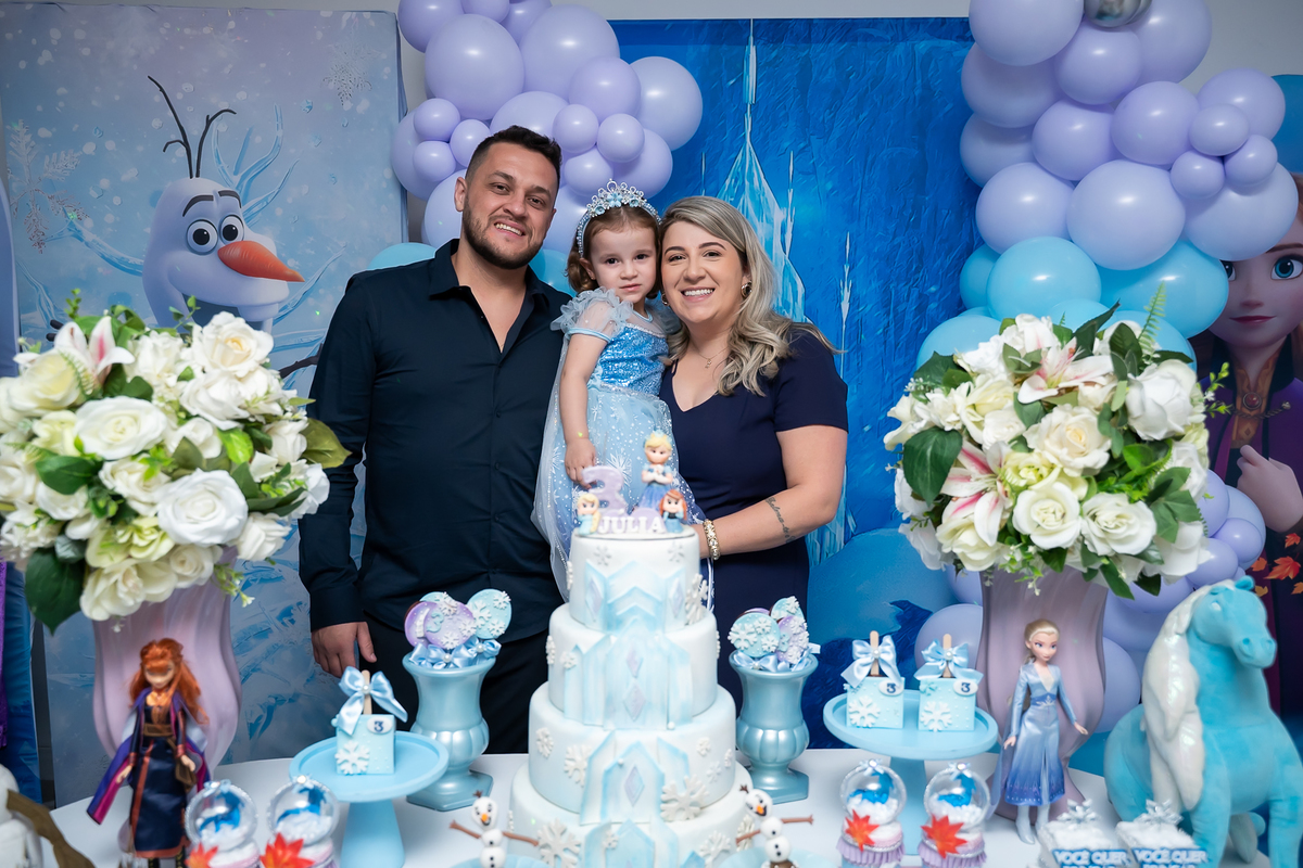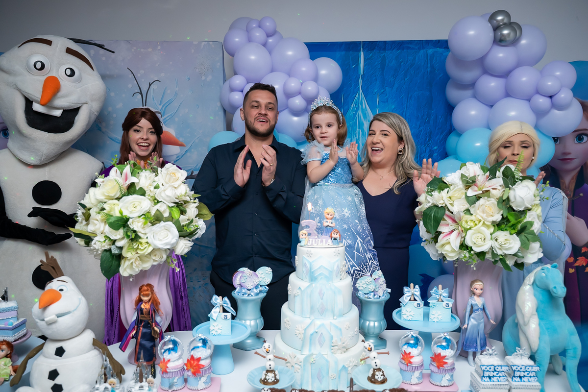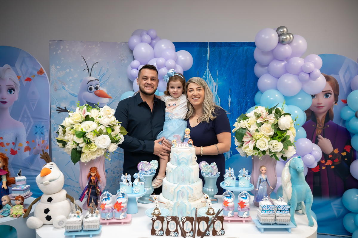 Uma noite mágica e congelante celebrou o aniversário de 3 aninhos da pequena Júlia! O Buffet Bolo e Balão foi o cenário perfeito para receber essa aventura encantada.