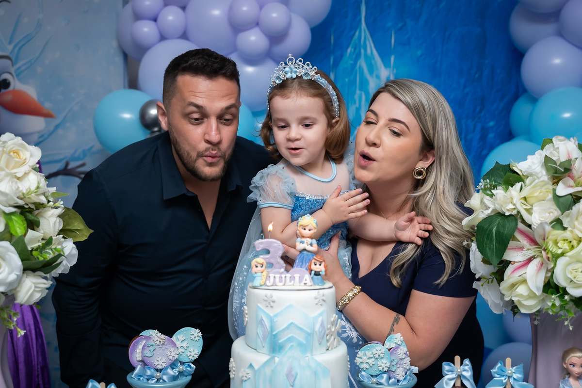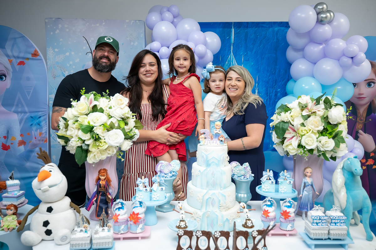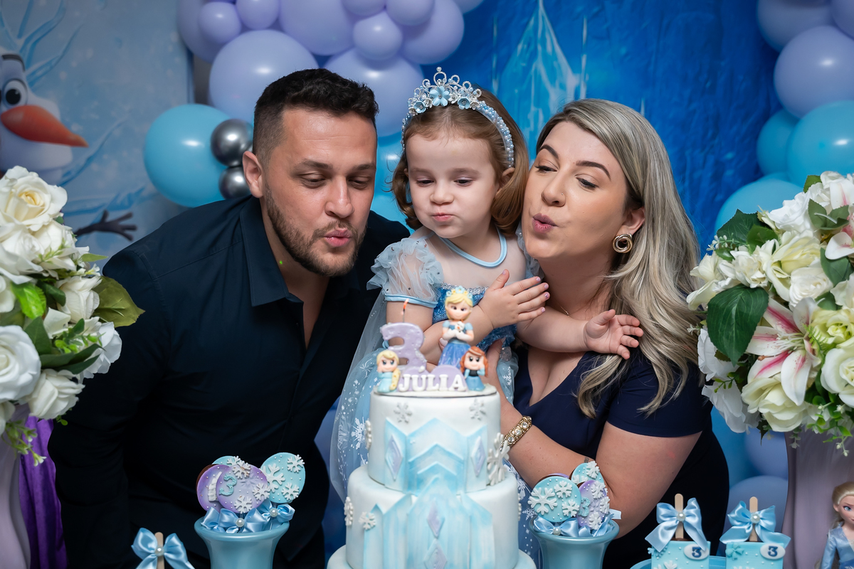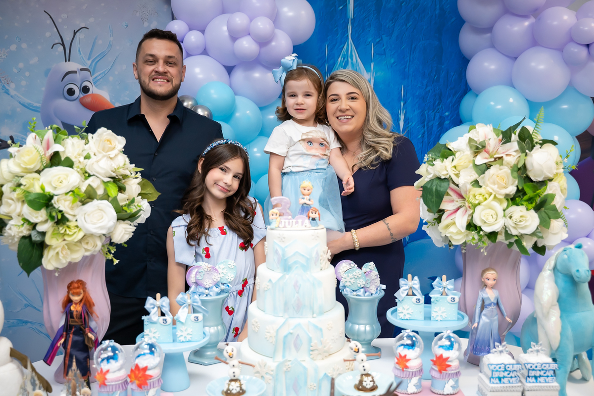 Uma noite mágica e congelante celebrou o aniversário de 3 aninhos da pequena Júlia! O Buffet Bolo e Balão foi o cenário perfeito para receber essa aventura encantada.
