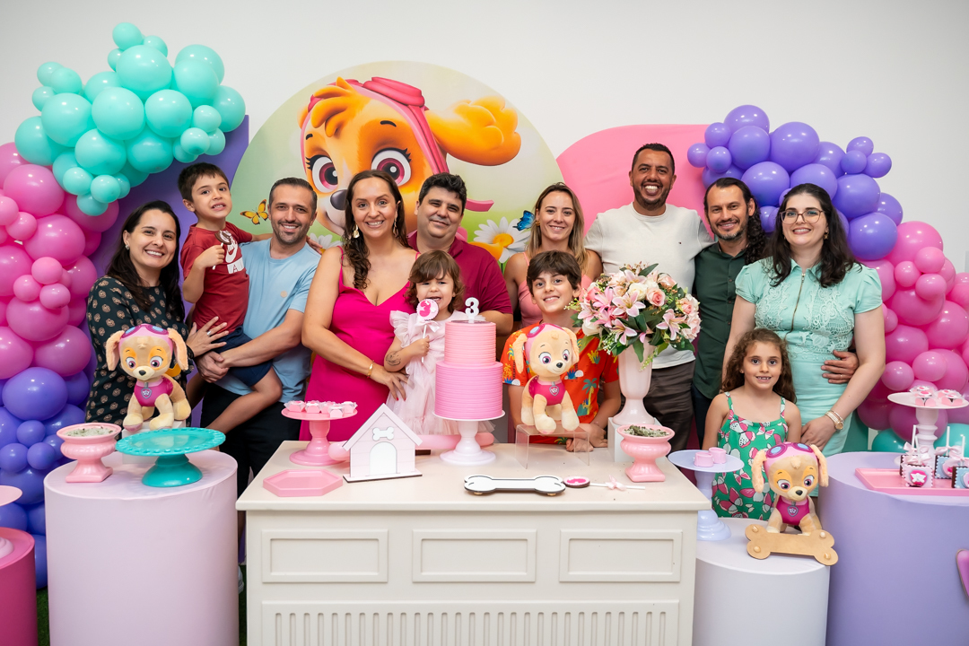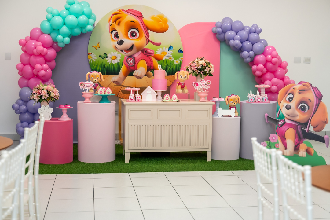 A festa no buffet Lá Vem a Festa foi simplesmente encantadora, com o tema da Patrulha Canina – Skye, deixando tudo ainda mais especial e cheio de magia. 💖🐾