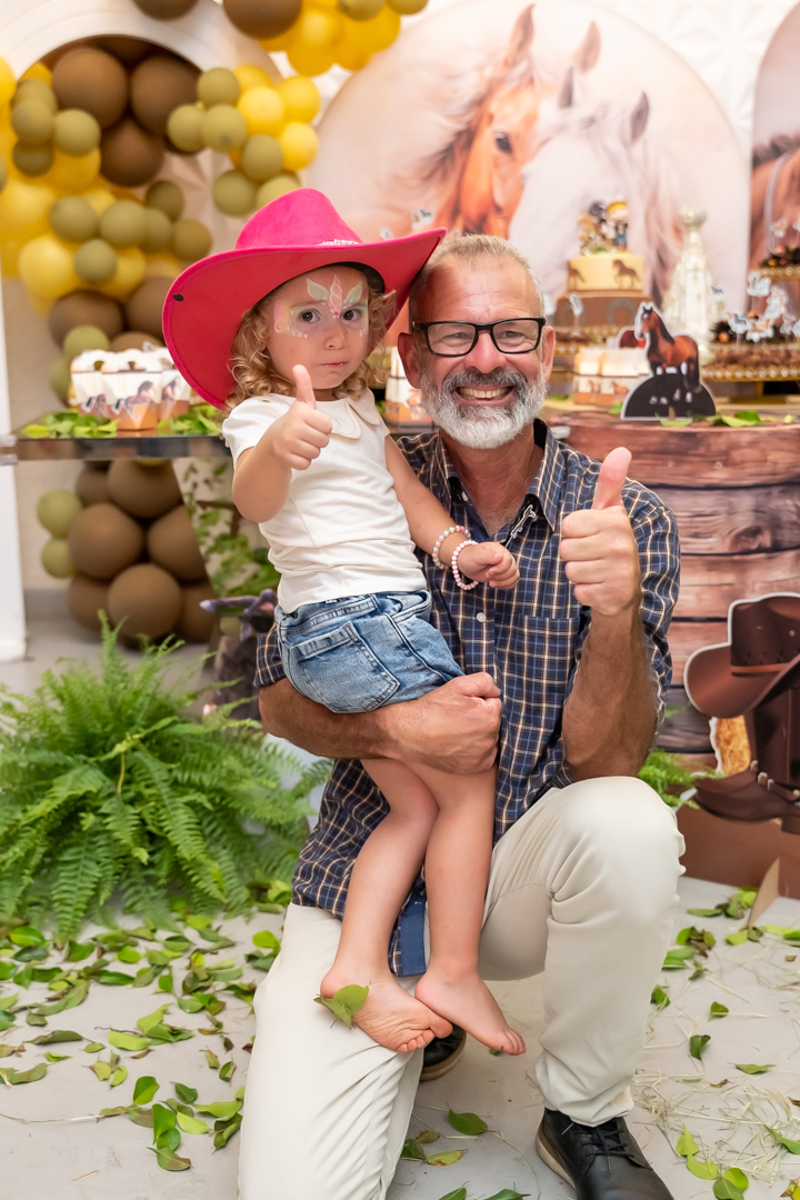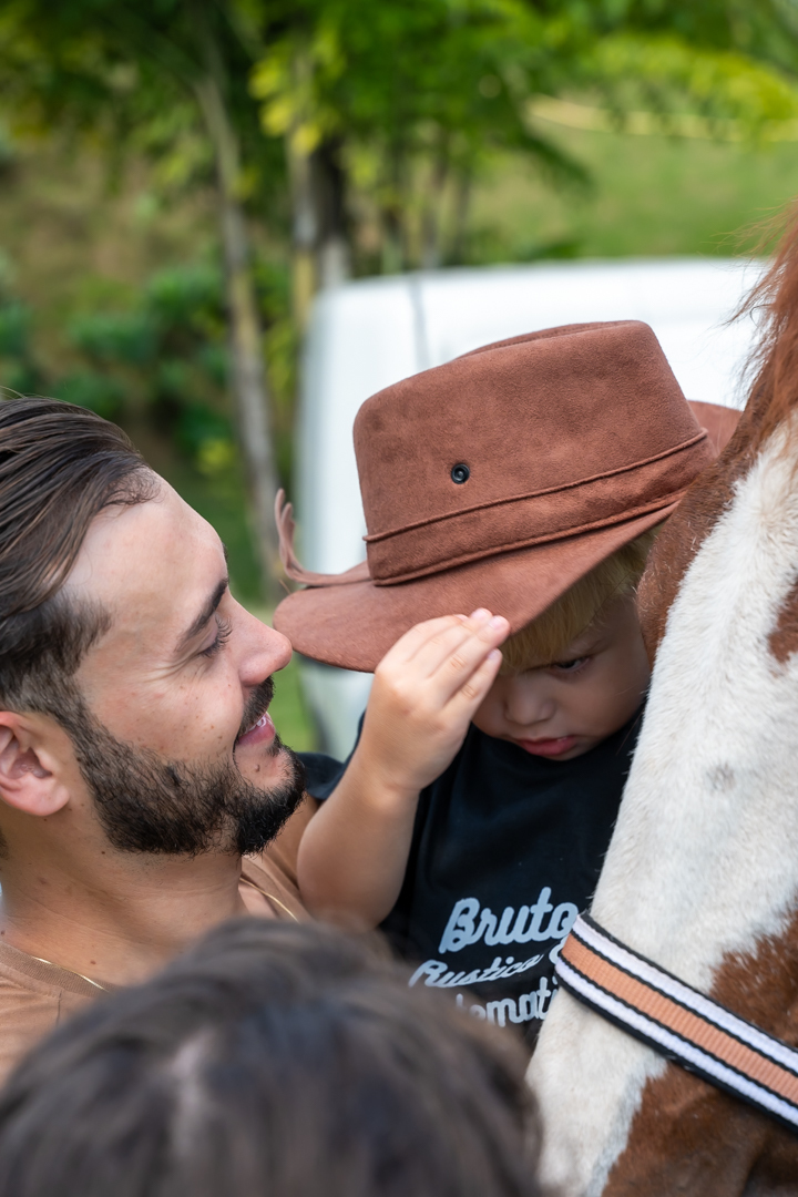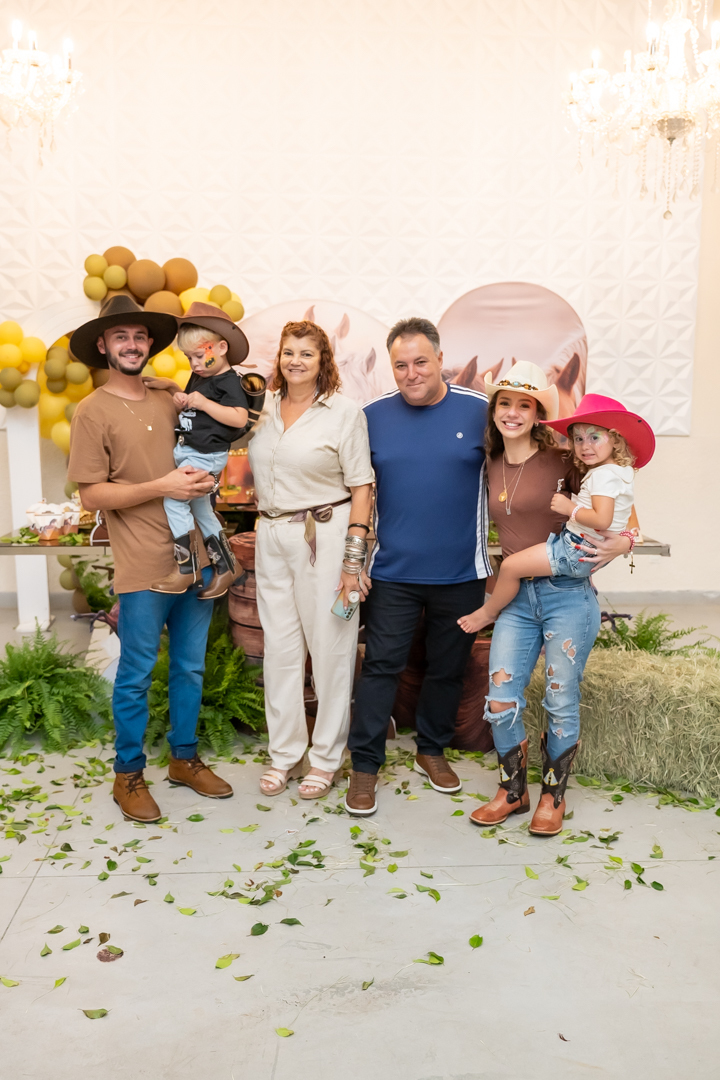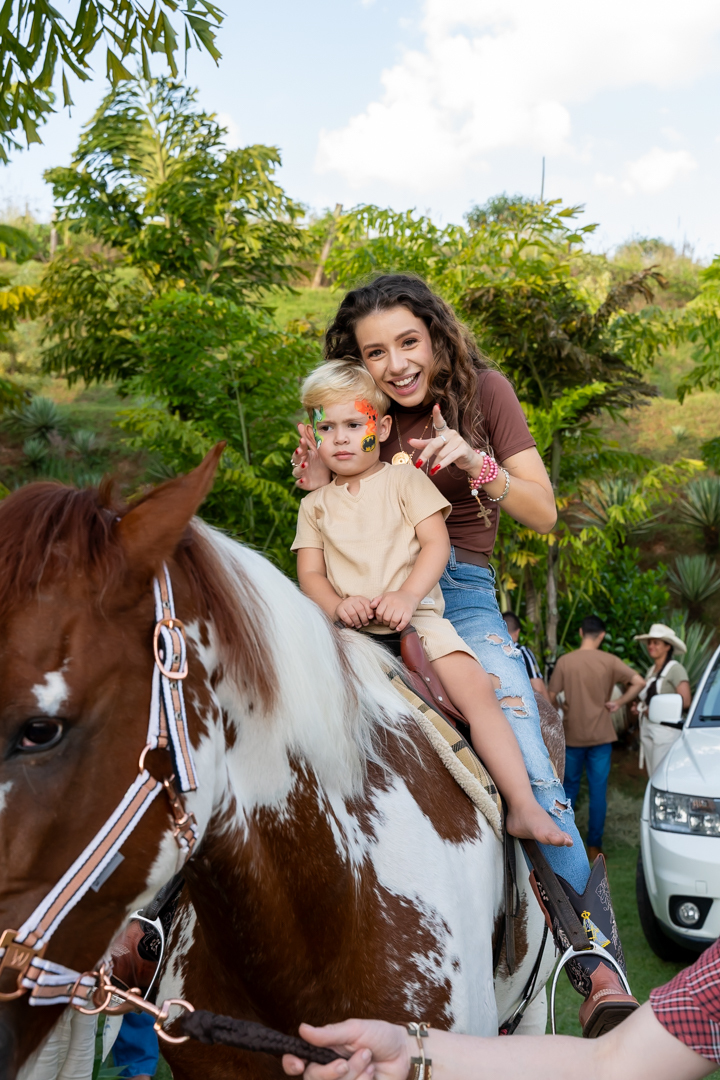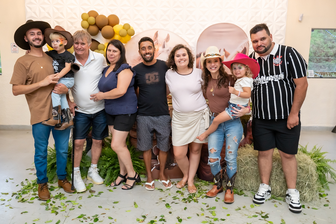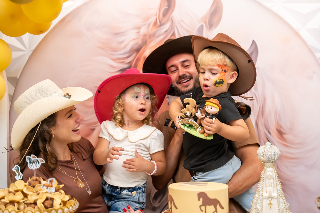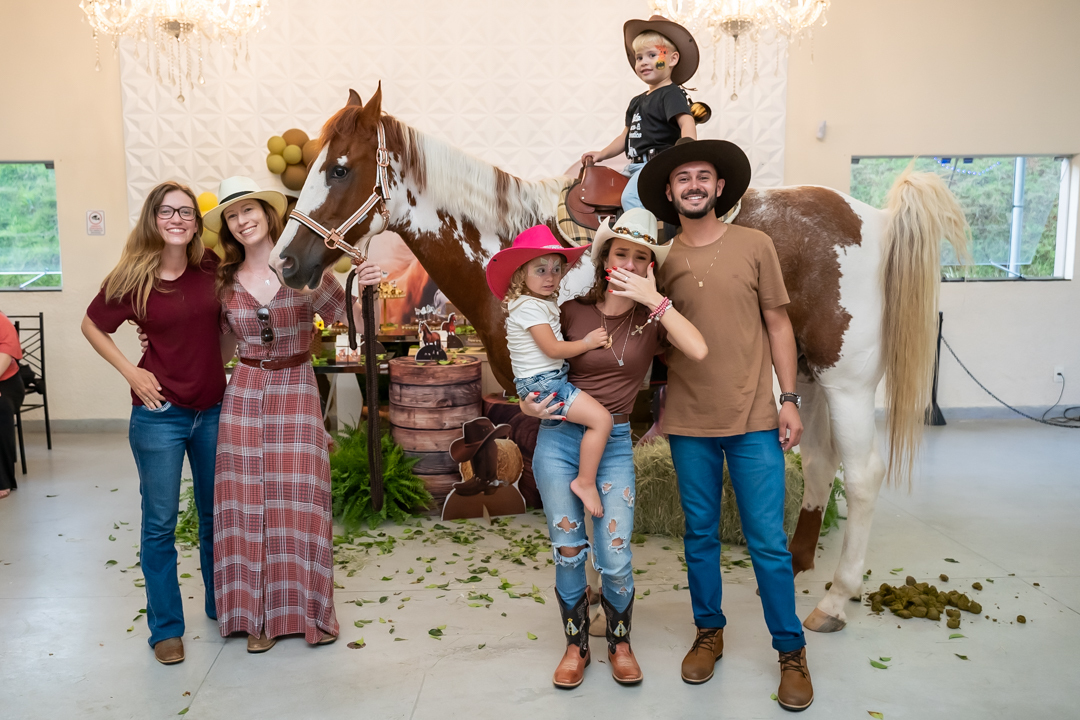 E para tornar tudo ainda mais inesquecível, pouco antes do parabéns, Vicente fez uma entrada triunfal montando o lindo cavalo malhado, o indiano Jarc — um verdadeiro espetáculo que emocionou e arrancou aplausos de todos. 🌟