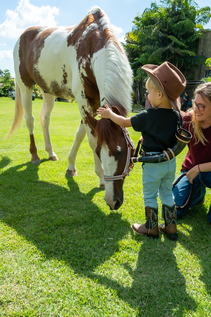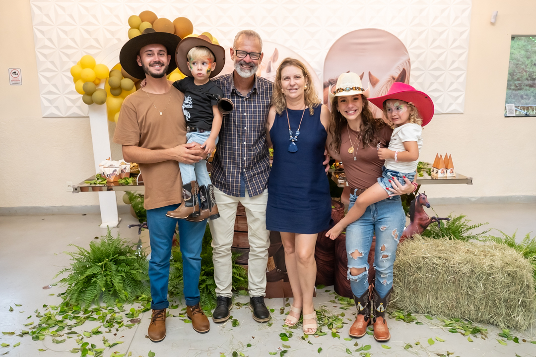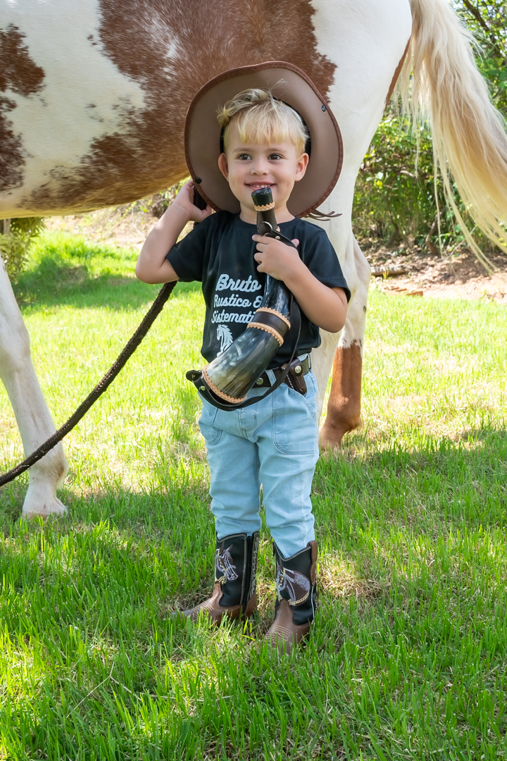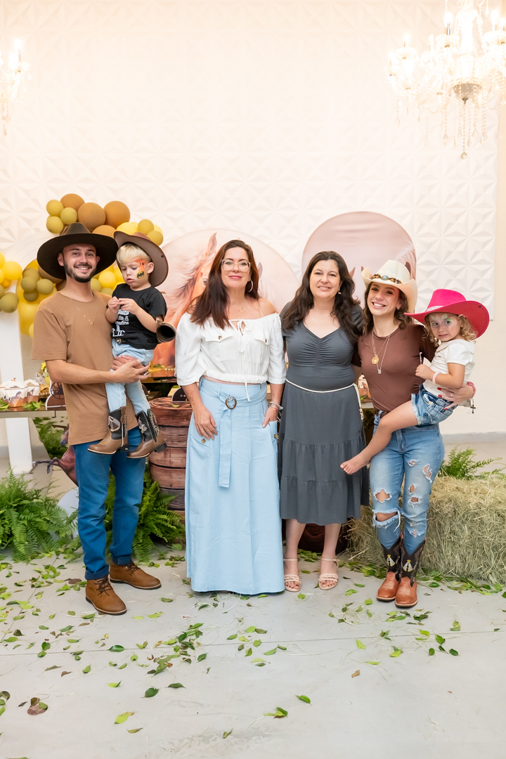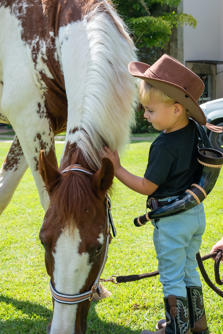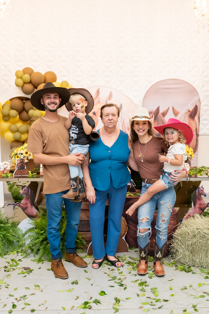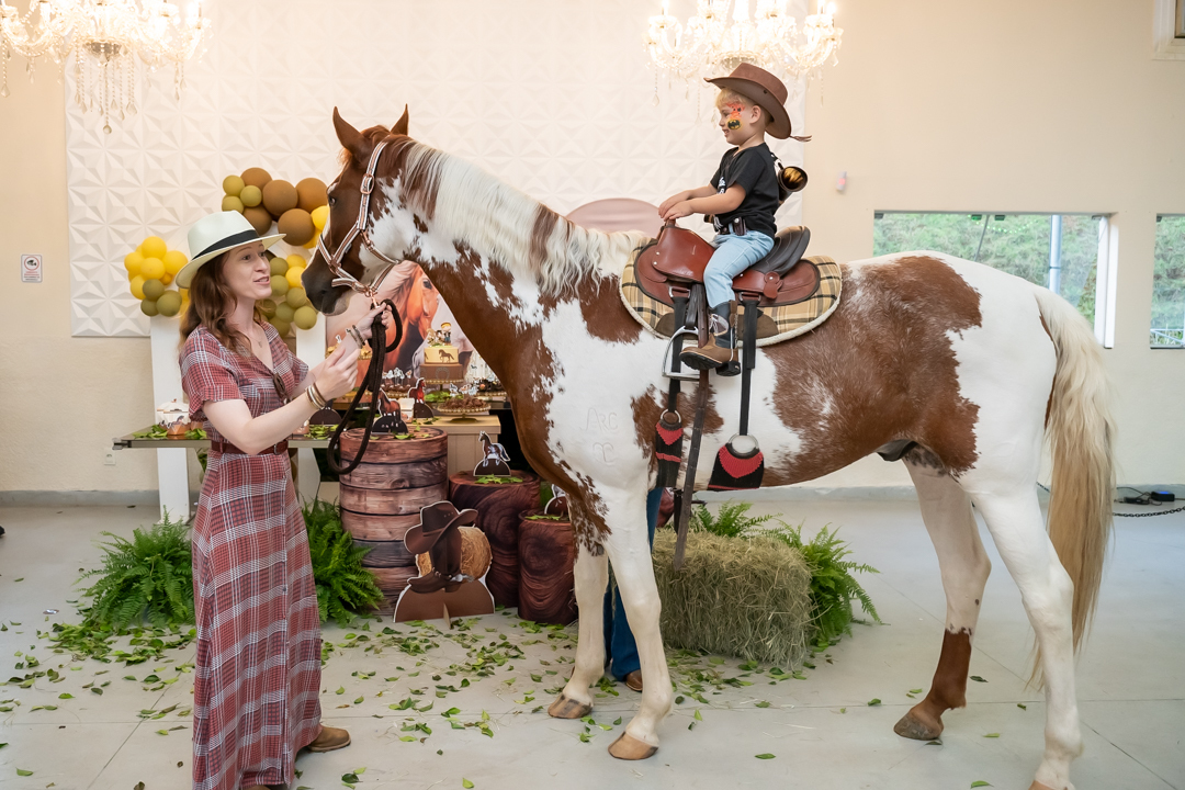 E para tornar tudo ainda mais inesquecível, pouco antes do parabéns, Vicente fez uma entrada triunfal montando o lindo cavalo malhado, o indiano Jarc — um verdadeiro espetáculo que emocionou e arrancou aplausos de todos. 🌟