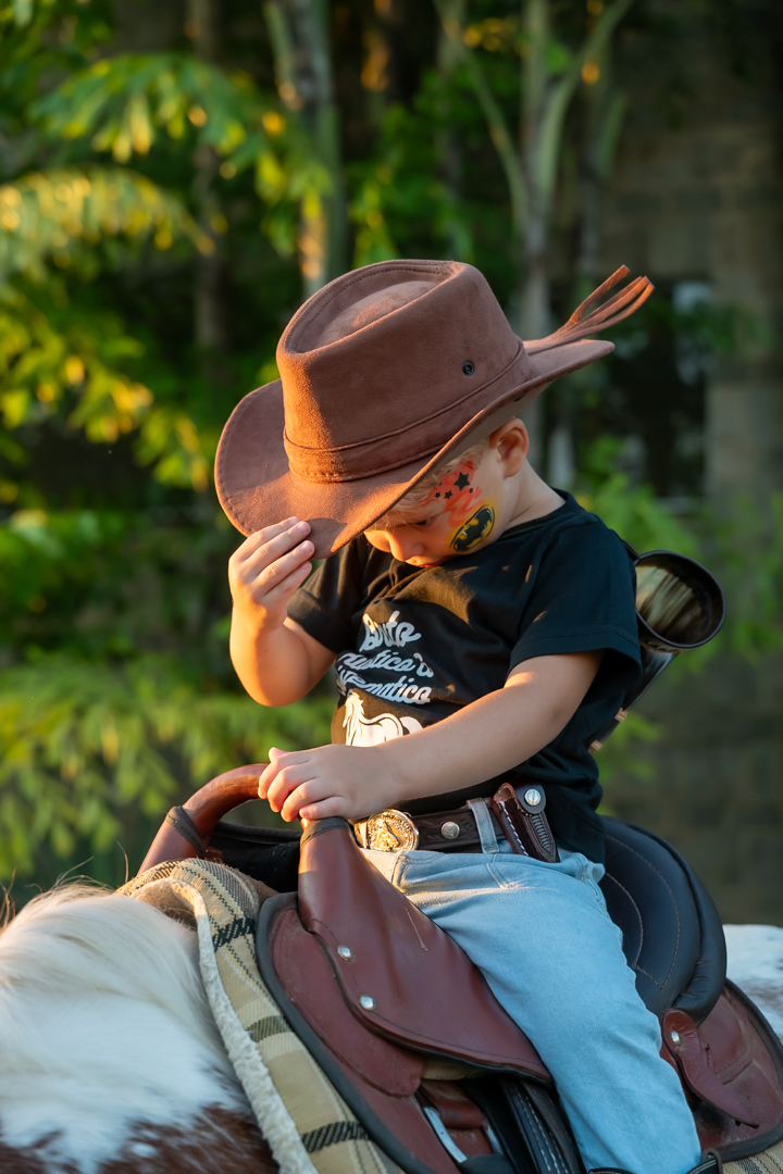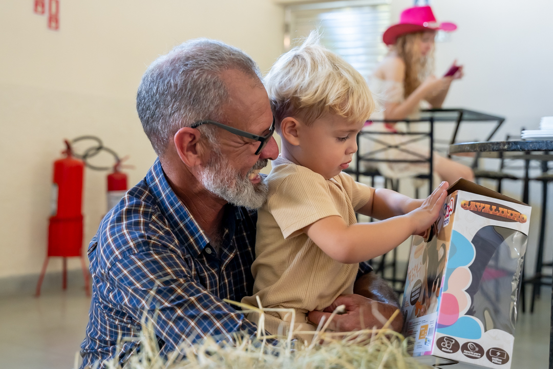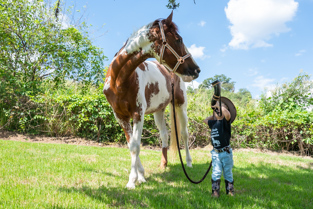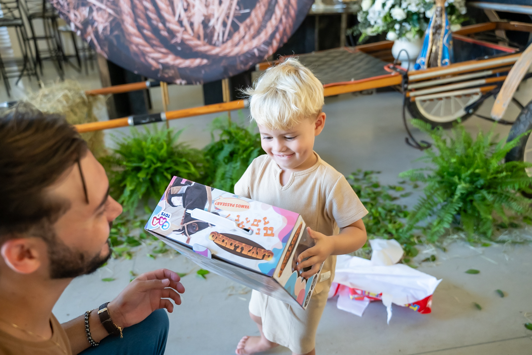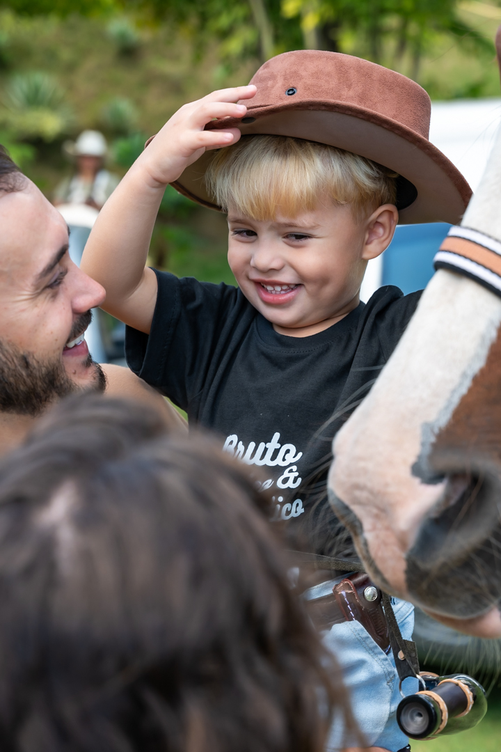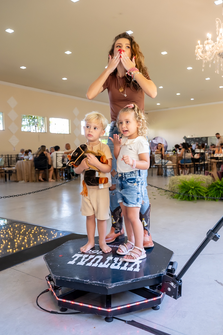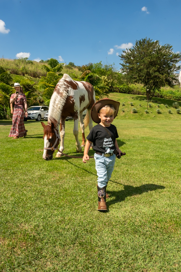 E para tornar tudo ainda mais inesquecível, pouco antes do parabéns, Vicente fez uma entrada triunfal montando o lindo cavalo malhado, o indiano Jarc — um verdadeiro espetáculo que emocionou e arrancou aplausos de todos. 🌟