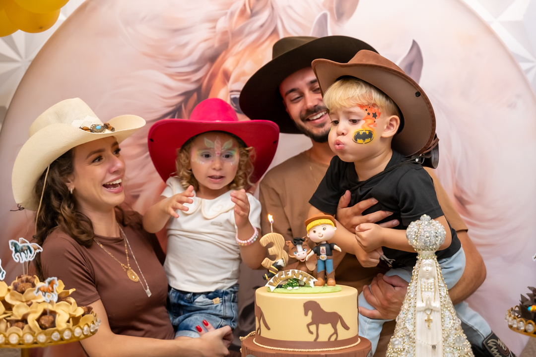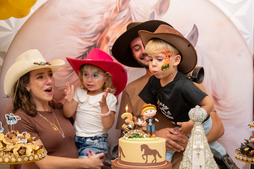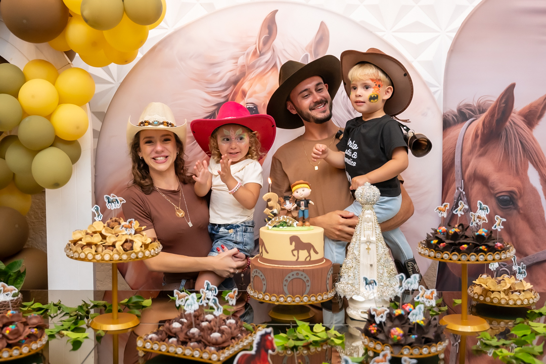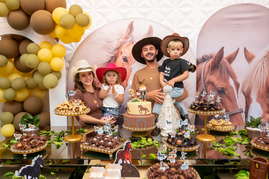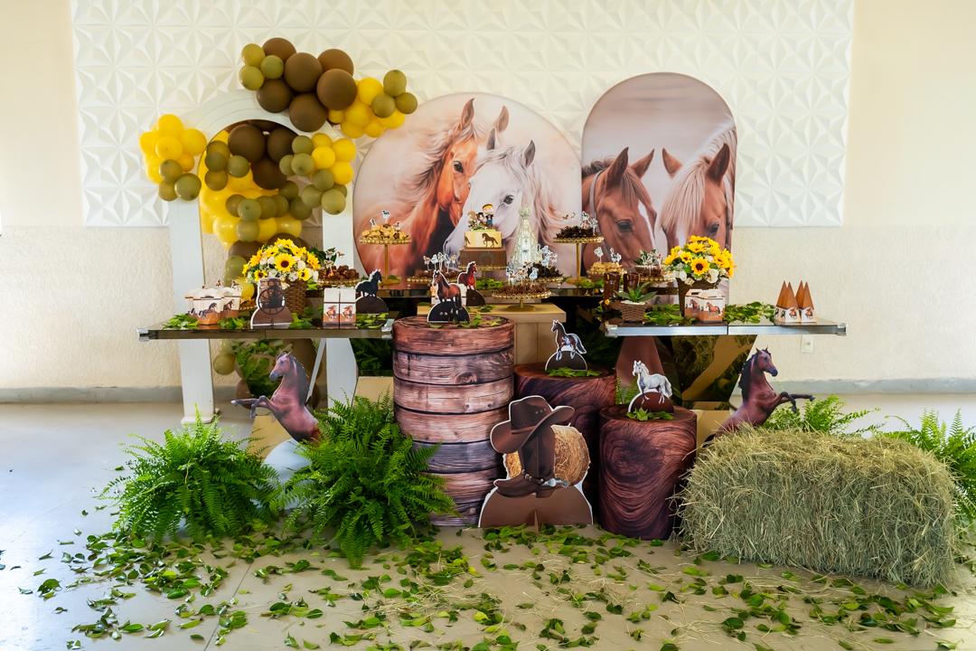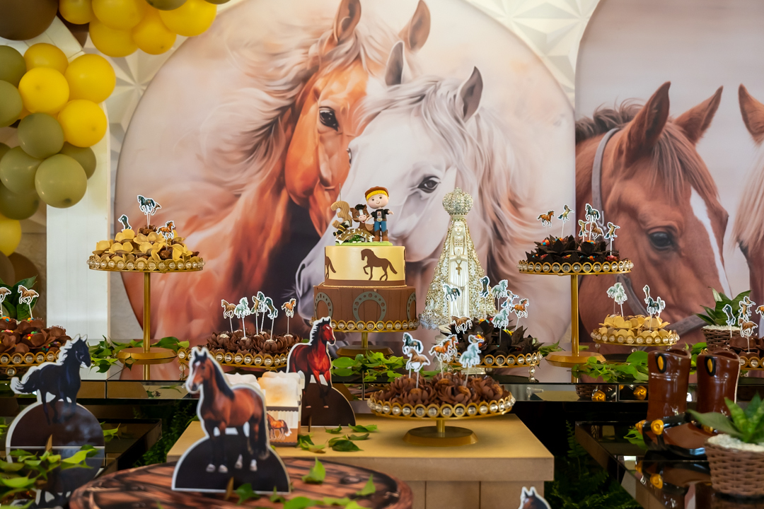 Cada detalhe foi preparado com muito carinho pela mamãe Laura, que escolheu o tema Cavalo, uma verdadeira paixão do Vicente. E, como já é tradição em todas as comemorações, a imagem de Nossa Senhora Aparecida esteve presente na decoração, abençoando esse momento tão especial — uma demonstração linda da devoção da Laura. 🙏✨