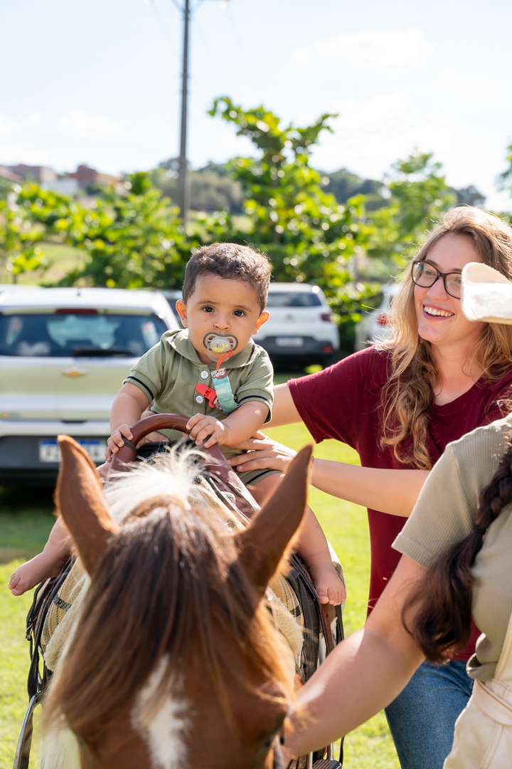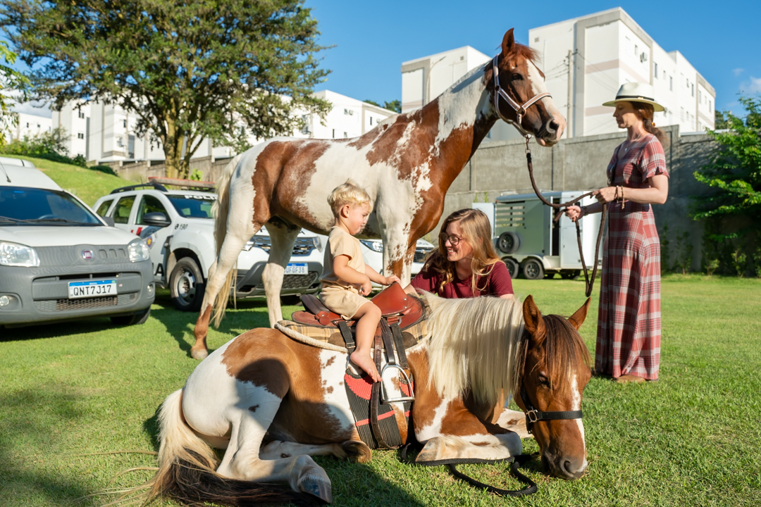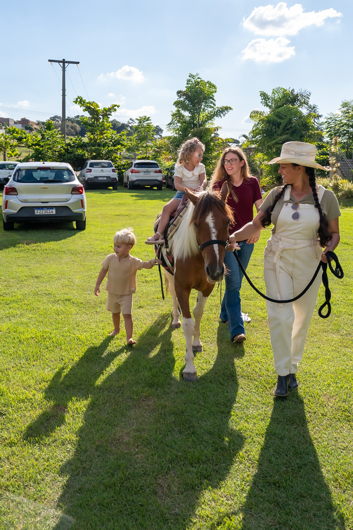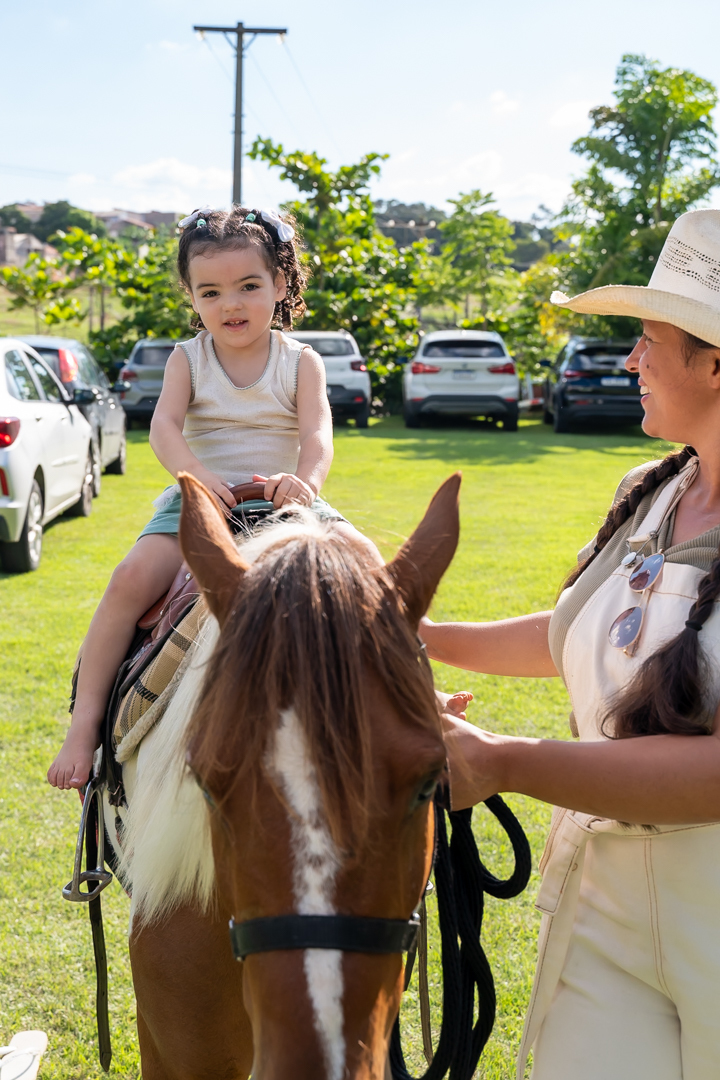 A festa foi repleta de alegria, com brinquedos e uma equipe de recreação super animada que garantiu a diversão da criançada. Mas a grande surpresa do dia encantou a todos: dois cavalos no estacionamento para que as crianças pudessem viver a experiência única de um passeio! 🐎💫
