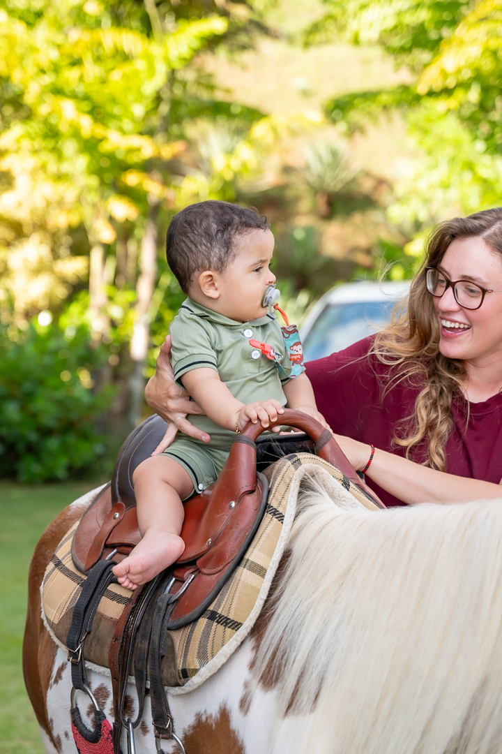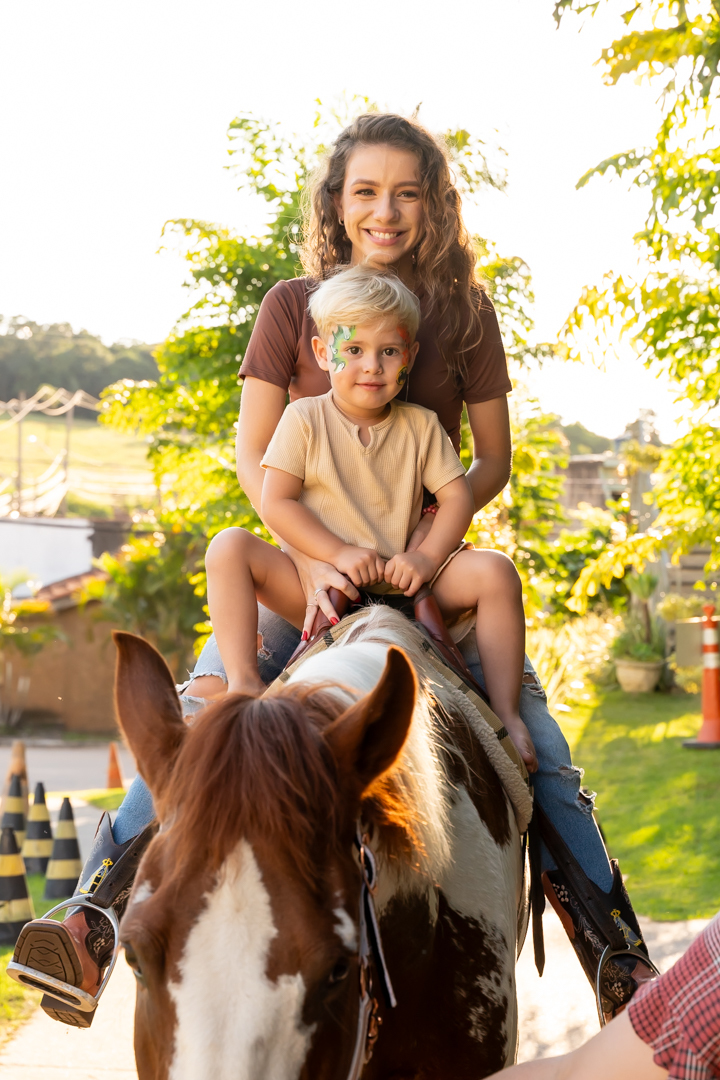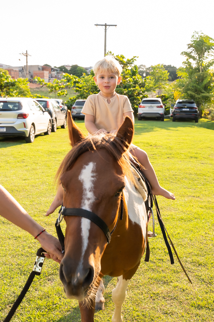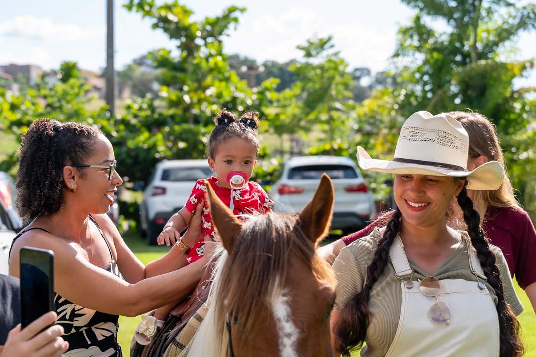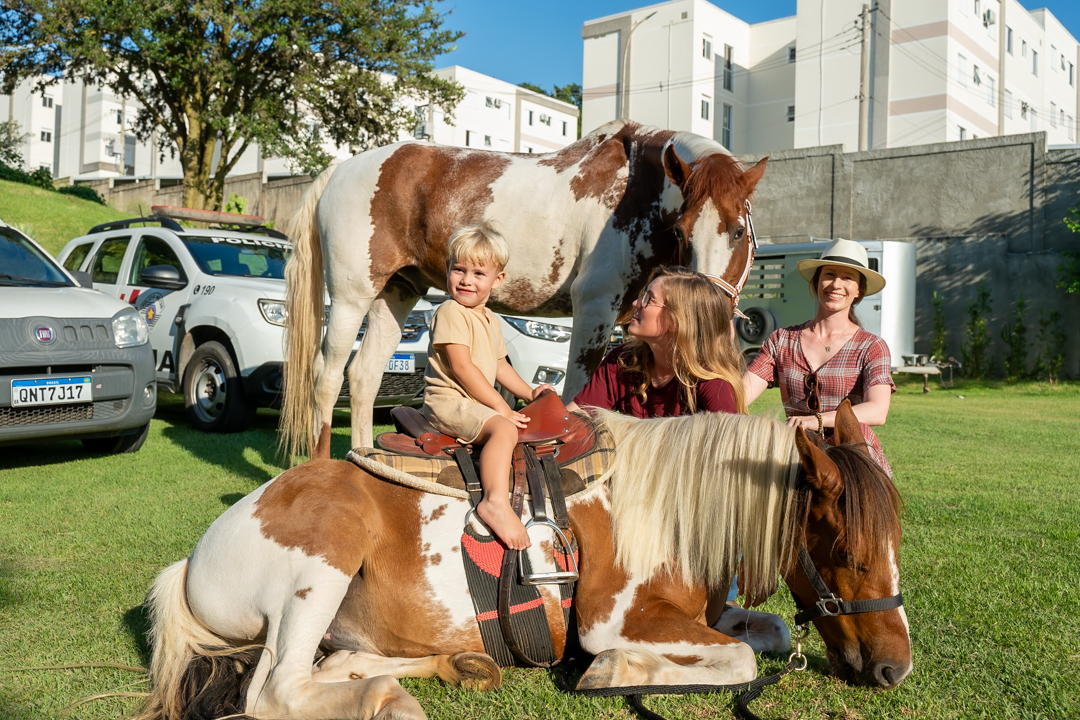 A festa foi repleta de alegria, com brinquedos e uma equipe de recreação super animada que garantiu a diversão da criançada. Mas a grande surpresa do dia encantou a todos: dois cavalos no estacionamento para que as crianças pudessem viver a experiência única de um passeio! 🐎💫